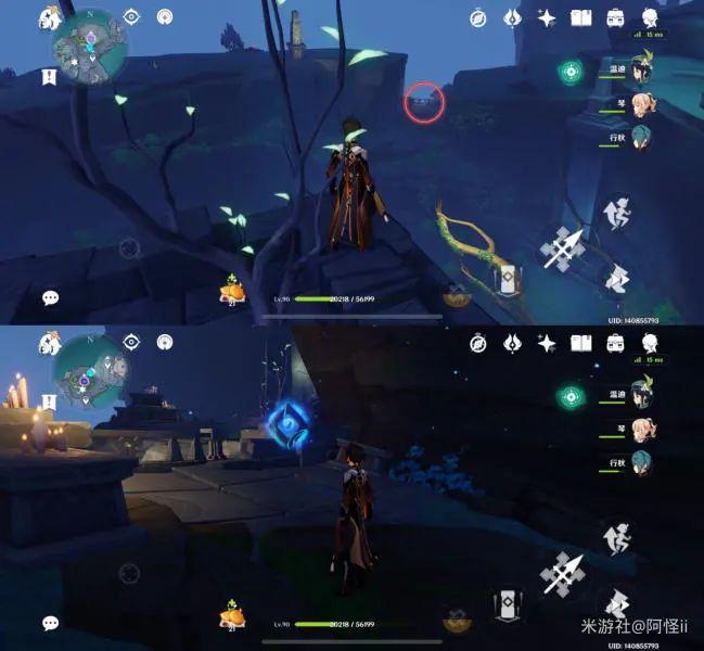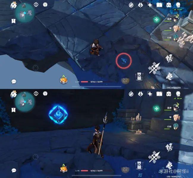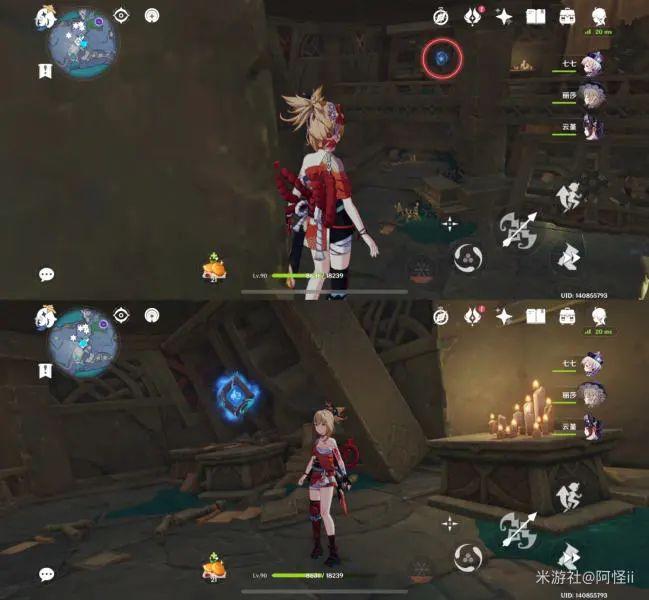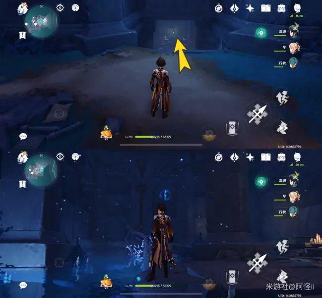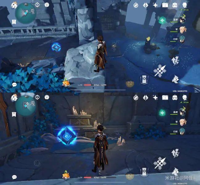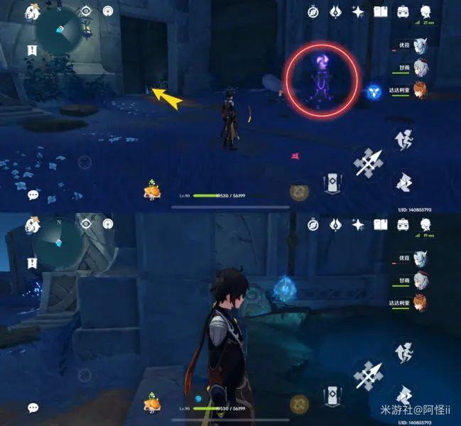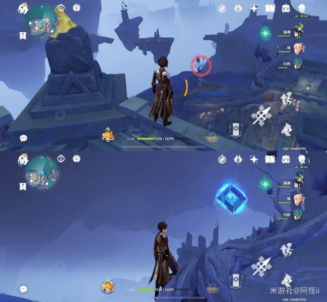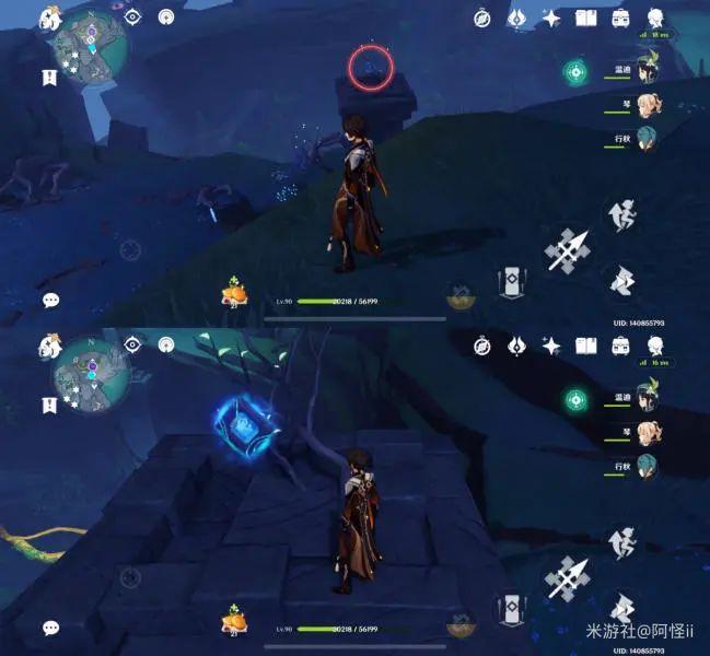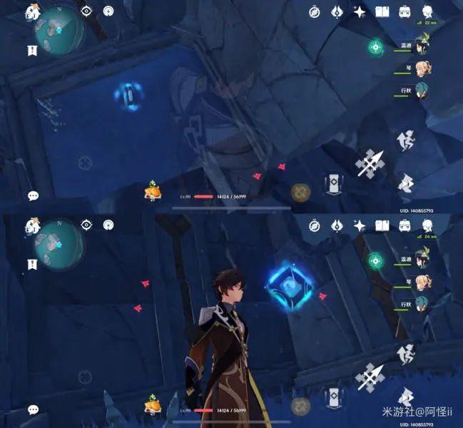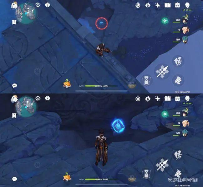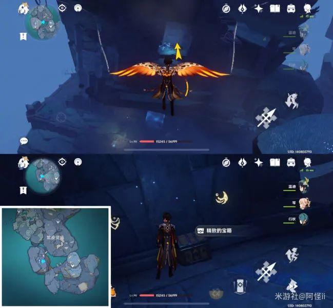 拿完七号位继续往前走,从悬崖跳下来,可以看到日月回轮(这里没有解锁的小伙伴需要调至白夜才能攻击三角机关从而进去获得键纹),解锁的小伙伴直接进去拿了就可以,旁边还有一个摩拉箱子可以捡