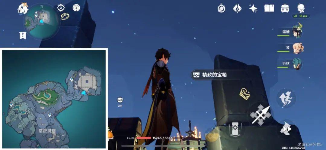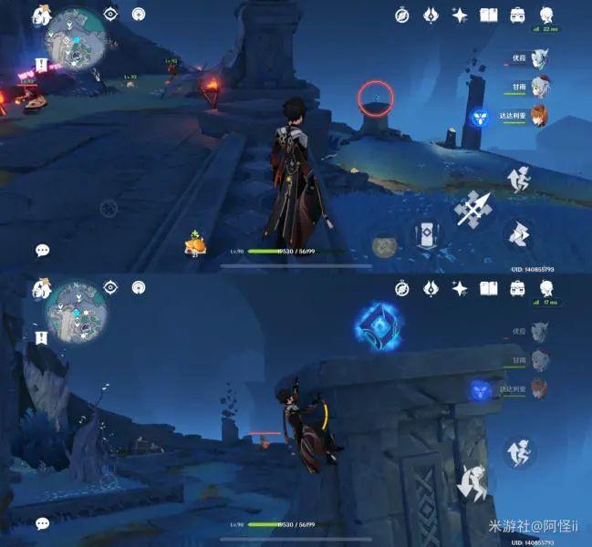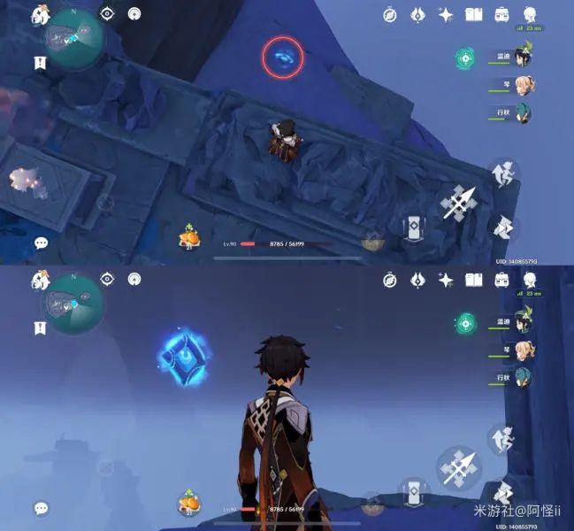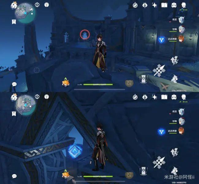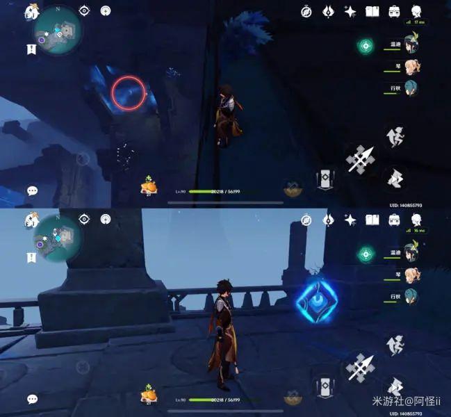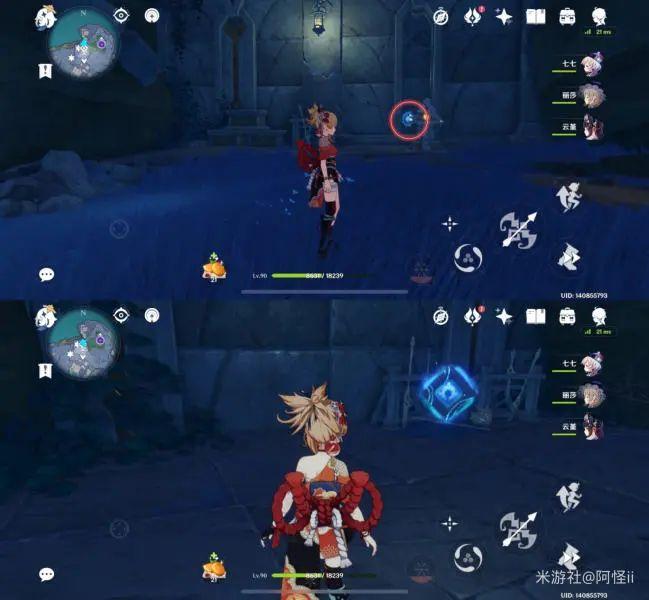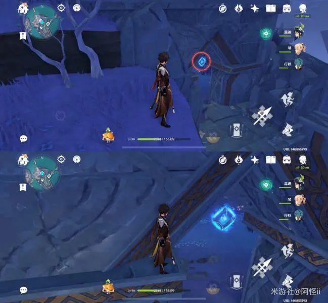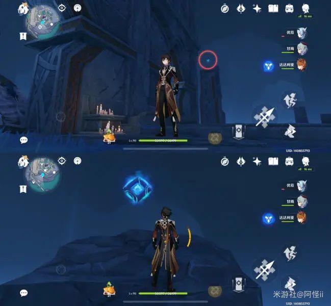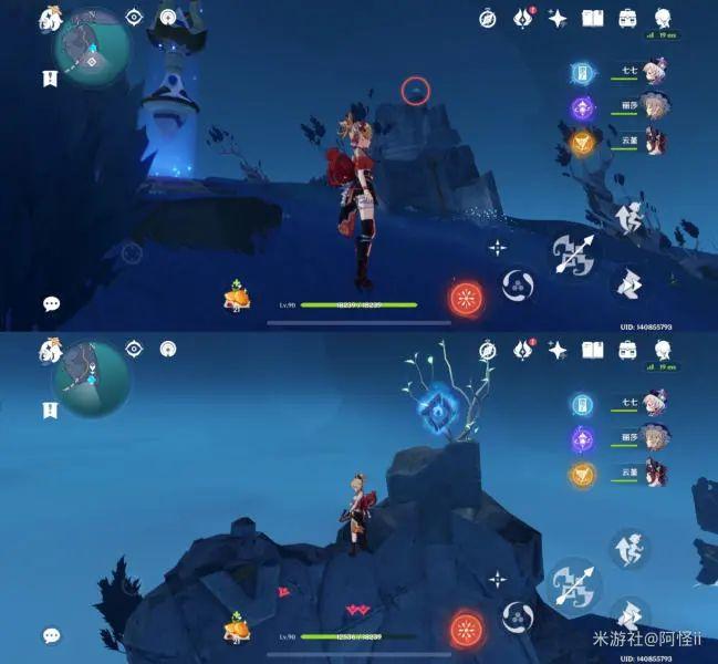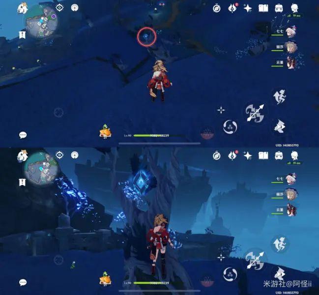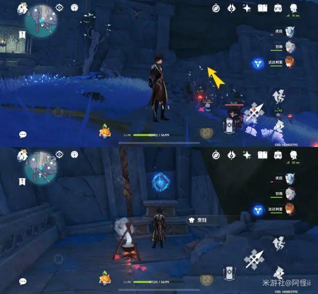拿完七号位继续往前走,从悬崖跳下来,可以看到日月回轮(这里没有解锁的小伙伴需要调至白夜才能攻击三角机关从而进去获得键纹),解锁的小伙伴直接进去拿了就可以,旁边还有一个摩拉箱子可以捡