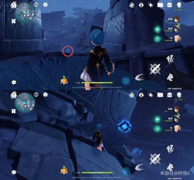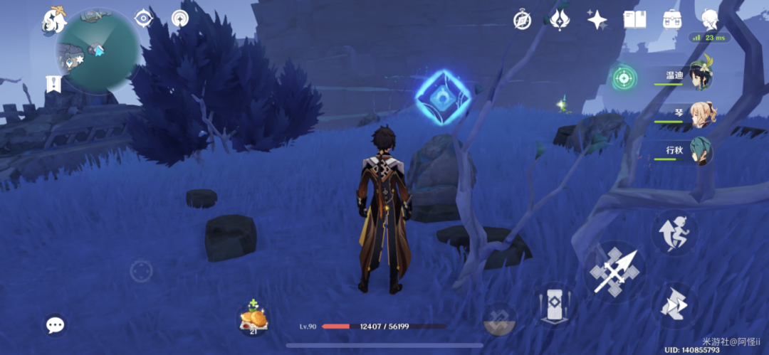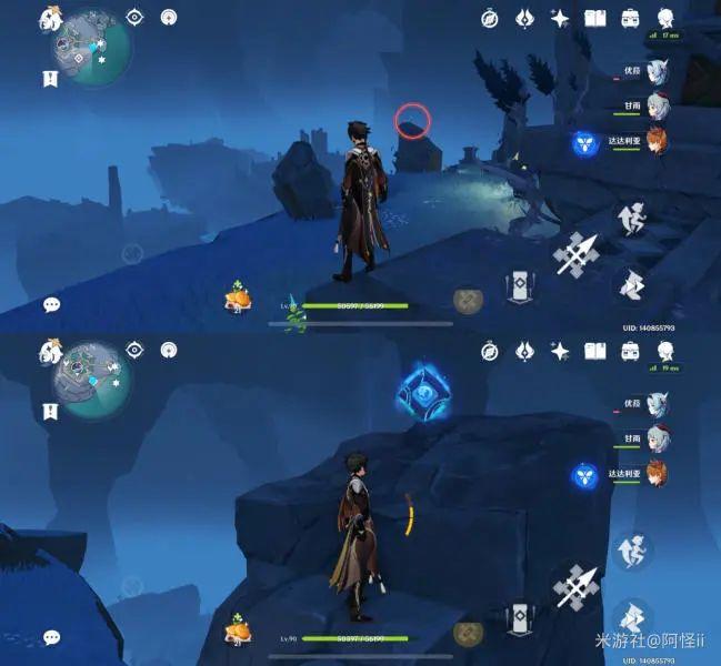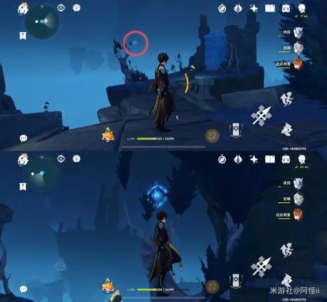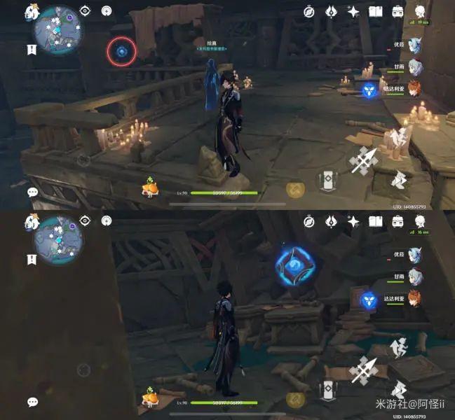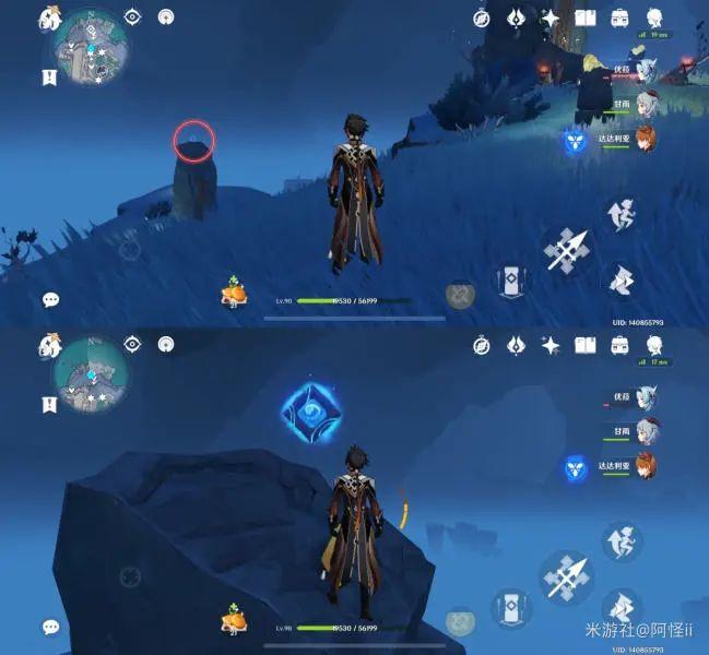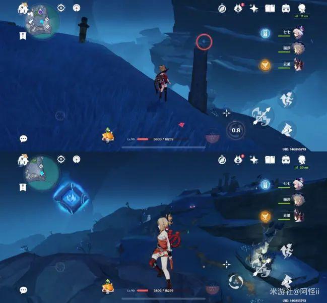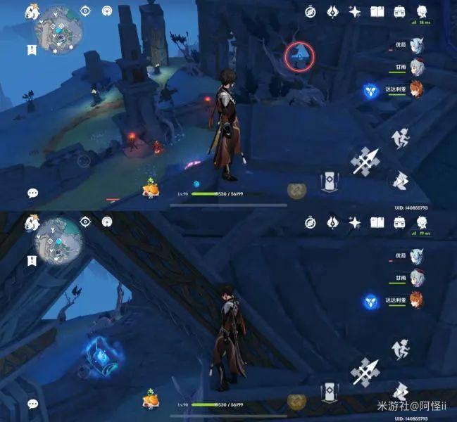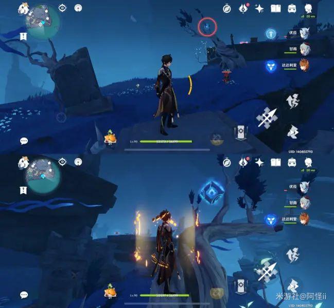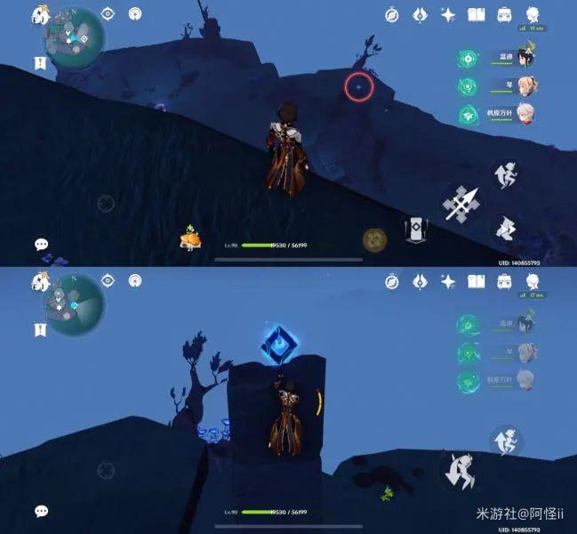 拿完七号位继续往前走,从悬崖跳下来,可以看到日月回轮(这里没有解锁的小伙伴需要调至白夜才能攻击三角机关从而进去获得键纹),解锁的小伙伴直接进去拿了就可以,旁边还有一个摩拉箱子可以捡