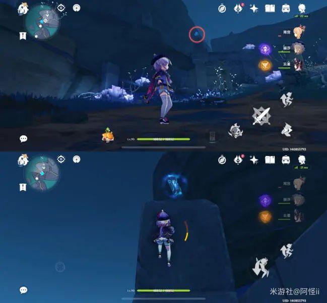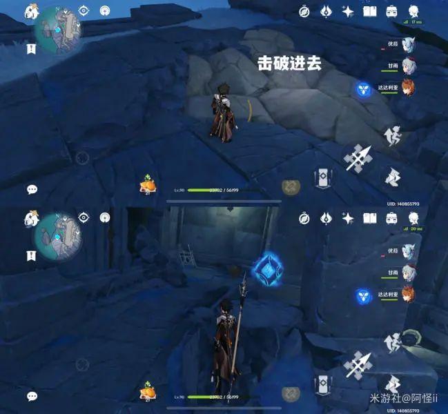 前往如图点位会看到一个假石堆,击破它下去就能看到键纹
