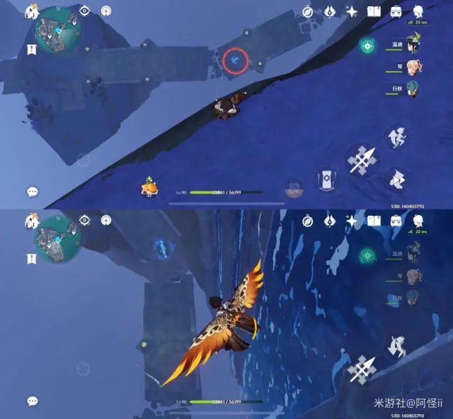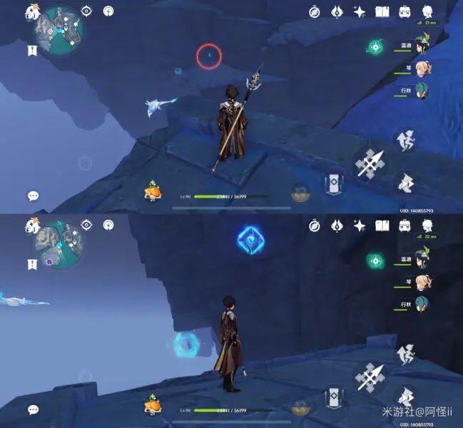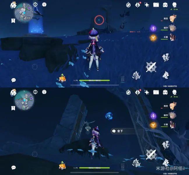 从悬崖上往下飞可以看到一个传送通道和很多丘丘人,键纹就在丘丘人中间,怪怪这里拿掉了所以就用文字代替下拉