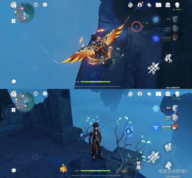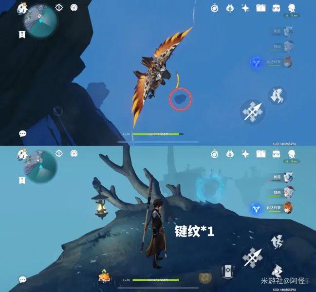 从最上方传送点往下飞,到如图点位就能看到树上有个键纹,爬上去就能拿到