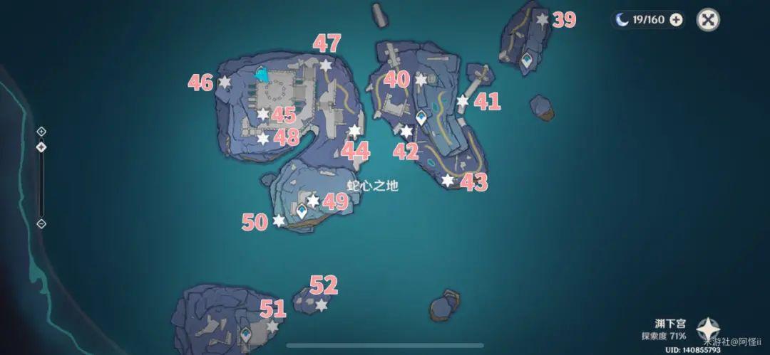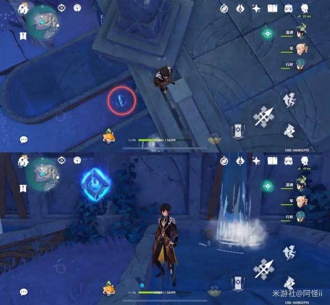 如图点位在最下方有三个水柱子中间有个键纹,激活三个水柱子即可获得键纹