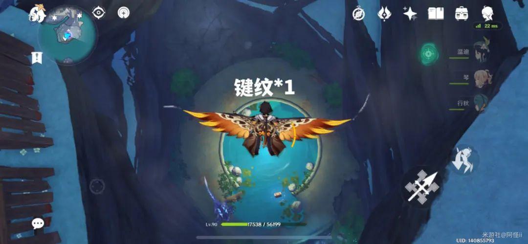 传送点往悬崖瀑布走,能看到瀑布旁边有个键纹,飞下去即可拿到