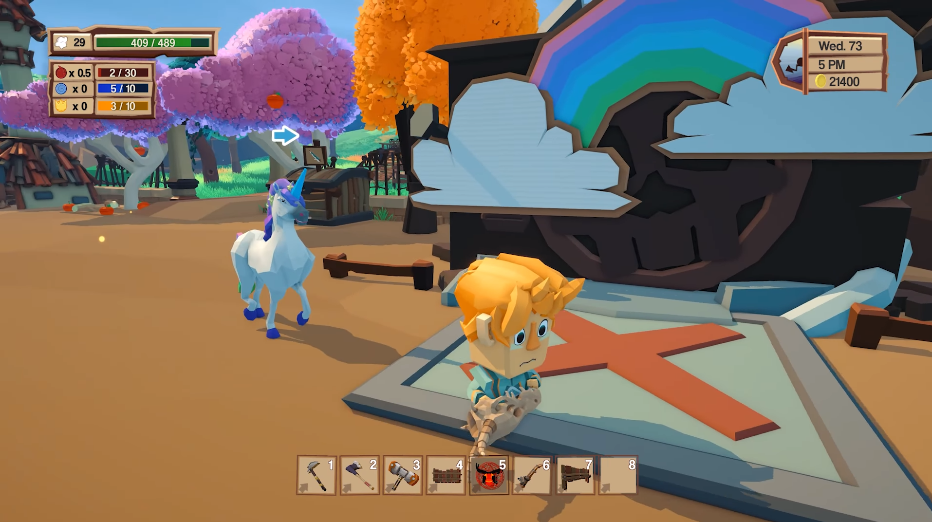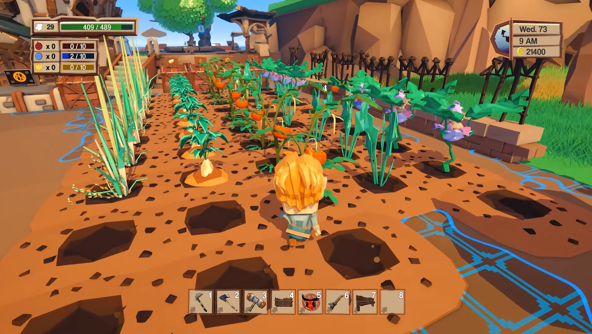 游戏的玩法和《波西亚时光》比较相似,玩家可以操作角色在岛上任意地移动,做你想做的事情,种菜、养鸡、钓鱼、探险等等。不过游戏的核心是以剧情为导向的,玩家需要跟着剧情不断前进,可以解锁更多的道具,结识村子上的村民,和NPC展开互动。甚至游戏中还有坐骑系统和角色养成玩法,玩家可以获得自己的坐骑来提升移动速度,通过培养角色的能力和吃料理来提升角色的等级。