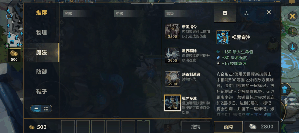 新增装备视界专注,给长手法师们提供了新的出装选择。