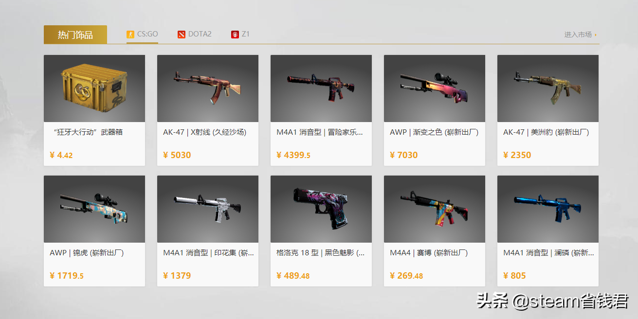 玩家可以在steam社区市场购买饰品,再把饰品挂到第三方饰品交易网站出售。