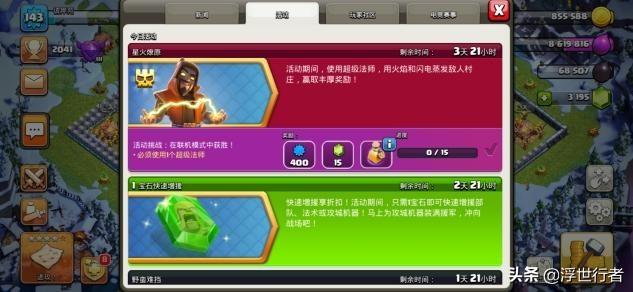 部落冲突经常会上线一些限时活动,完成活动挑战之后能拿到游戏道具和宝石奖励,活动频率相对较高,比如当前上架的星火燎原和野蛮难挡活动,完成之后总共能获得30宝石。