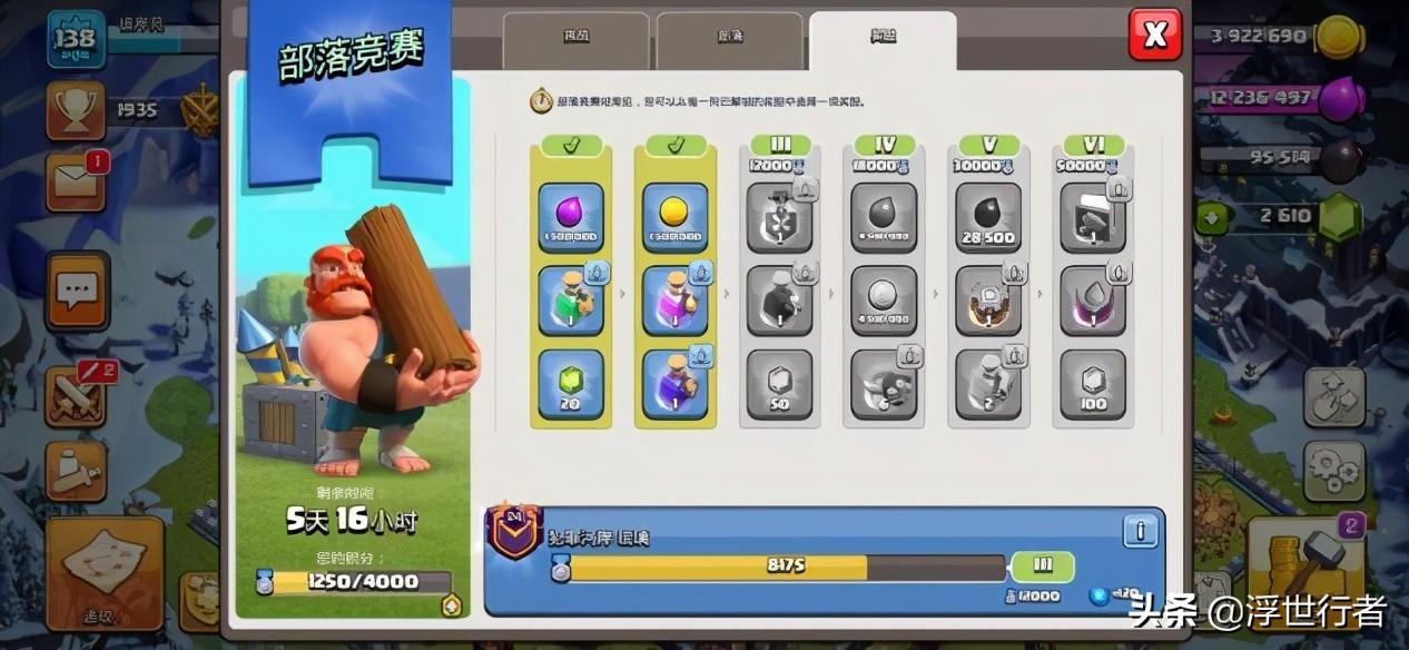 部落冲突每月会上线一次部落竞赛活动,参与并完成挑战任务就能在竞赛结束之后选择奖励,其中包含资源,道具以及宝石奖励,可以根据需要去选择。