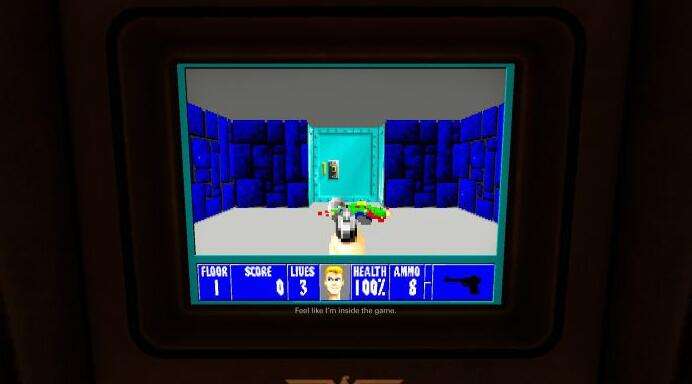 另外,主角BJ和抵抗组织的成员,还会在前作劫持的纳粹潜艇——“爱娃之锤”号建立基地。在这里,玩家可以暂时远离枪林弹雨的战场,与战友们一起进行更多的互动,并享受靶场射击、音乐等娱乐活动。另外,不得不提的是,玩家可找到一台完好的复古街机,体验一款名为《Wolfstone 3D》的作品。无论从画面还是玩法上,这款内置小游戏都和早年《德军总部3D》十分相似。