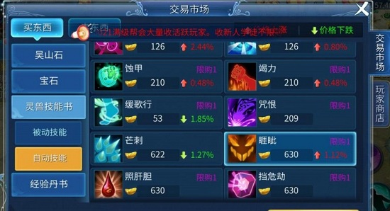 灵兽技能书:理由同上,因为升到30级技能必须花费大量时间攒技能书,所以一开始就囤货吧。