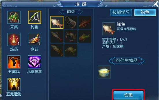 那么如何在游戏中钓鱼呢?首先,我们需要点开生活技能面板