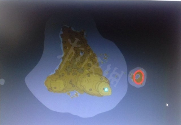宝箱就在红圈的水里。