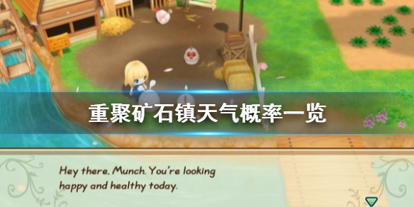 牧场物语再会矿石镇天气怎么控制?游戏中有多种的天气,很多小伙伴可能还不清楚各种天气怎么出吧,今天小编给大家带来重聚矿石镇天气概率一览,快来看一下吧。