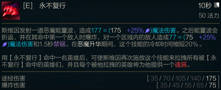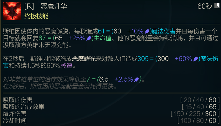 R冷却降低,每秒造成的基础伤害降低,法强收益降低;吸取的基础恢复在1级大招时是降低,2、3大招是加强;移除了魂屑的血量加成,导致前期更加需要出一些肉装过度。开大后如果附近没打到英雄,只能持续5秒,如果能一直R到人,就可以一直有大招,你可以理解为以前龙王的W一直开启的效果,而且不耗蓝。二段R多了一个减速效果,二段R不会结束R的持续效果,多了一个软控效果。还有一点重要的就是R在持续时间中是不计算R的冷却的,R什么时候结束就从那开始结算,这点要留意了。
