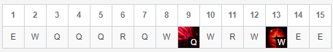 Q是主要输出技能,主升无疑;W虽然说命中率是个问题,但是E的命中率也不怎么样,E能命中的情况下W也能很好的命中,这里副升W能降低CD和提高减速效果,更加适合副升;E前三级点一级即可,主要用于控制效果。