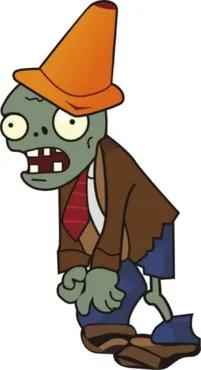 3.塑料僵尸(路障僵尸)——他的锥形路障头盔使他比普通僵尸强壮两倍。强壮度:中等。