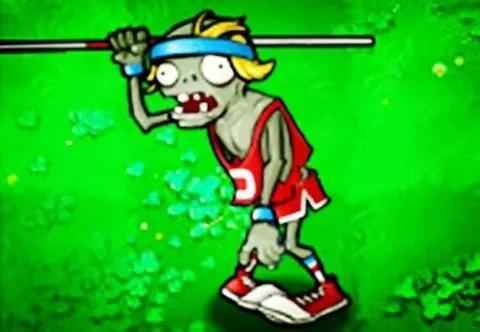 4.撑杆僵尸——撑杆僵尸撑杆跳;强壮度:中等;速度:快,然后普通(跳过之后);特点:跳过首个碰到的植物。
