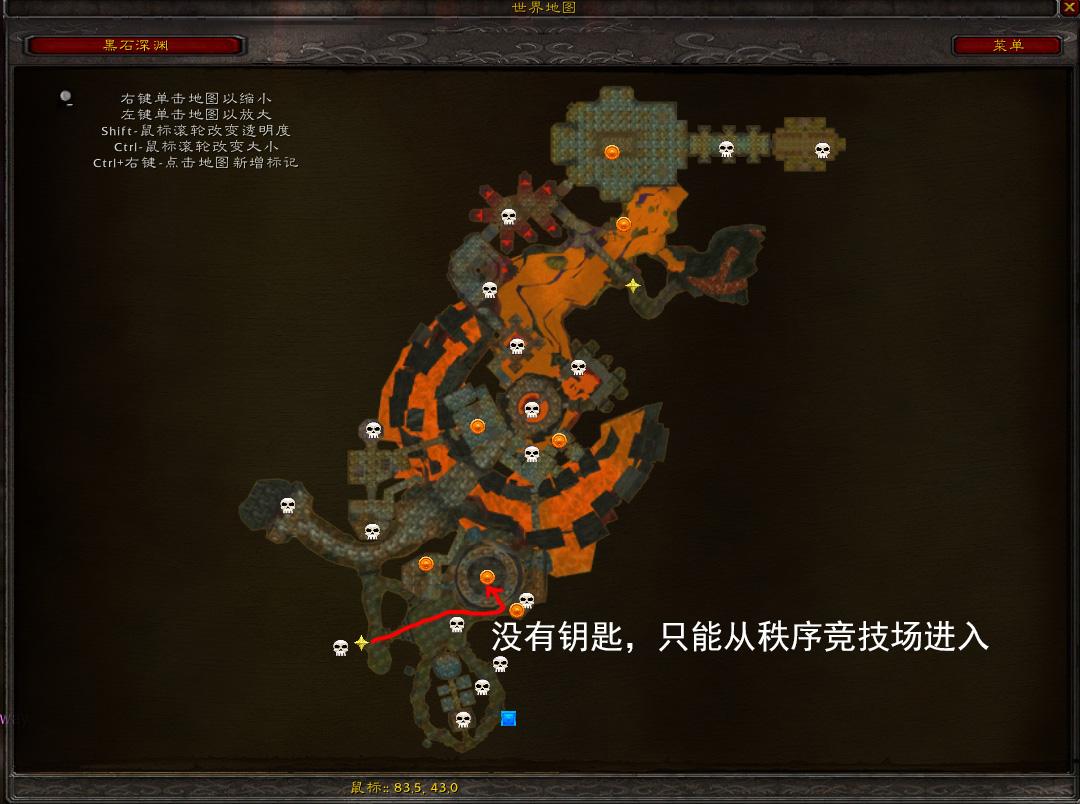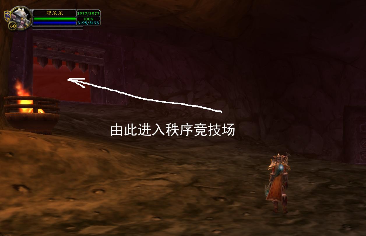 4.进黑石深渊副本,进本后直行略向右拐一点点,可以看到左侧有个秩序竞技场,杀进去。