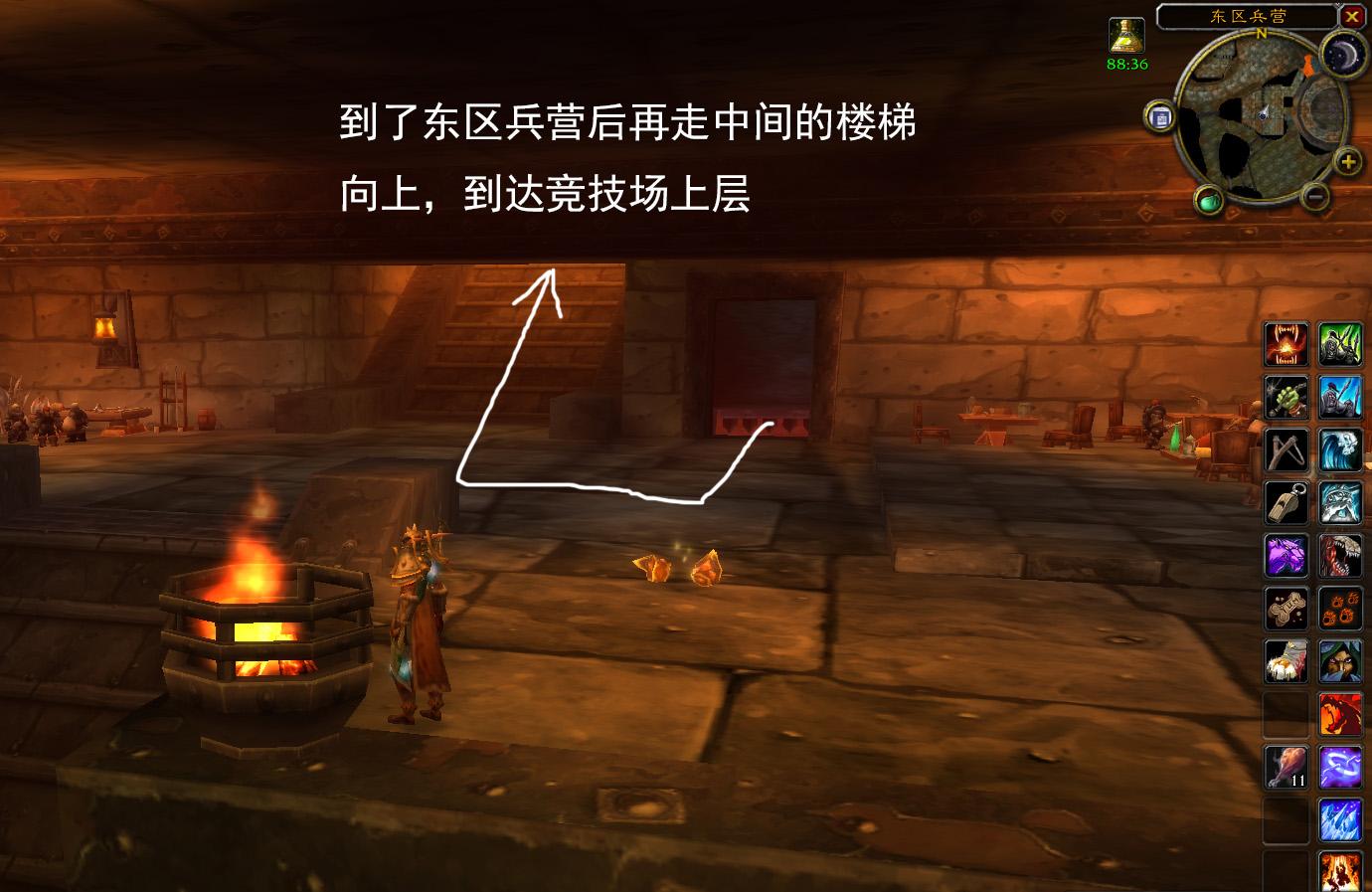 6.到达东区兵营后,再走中间的楼梯向上,到达竞技场上层。