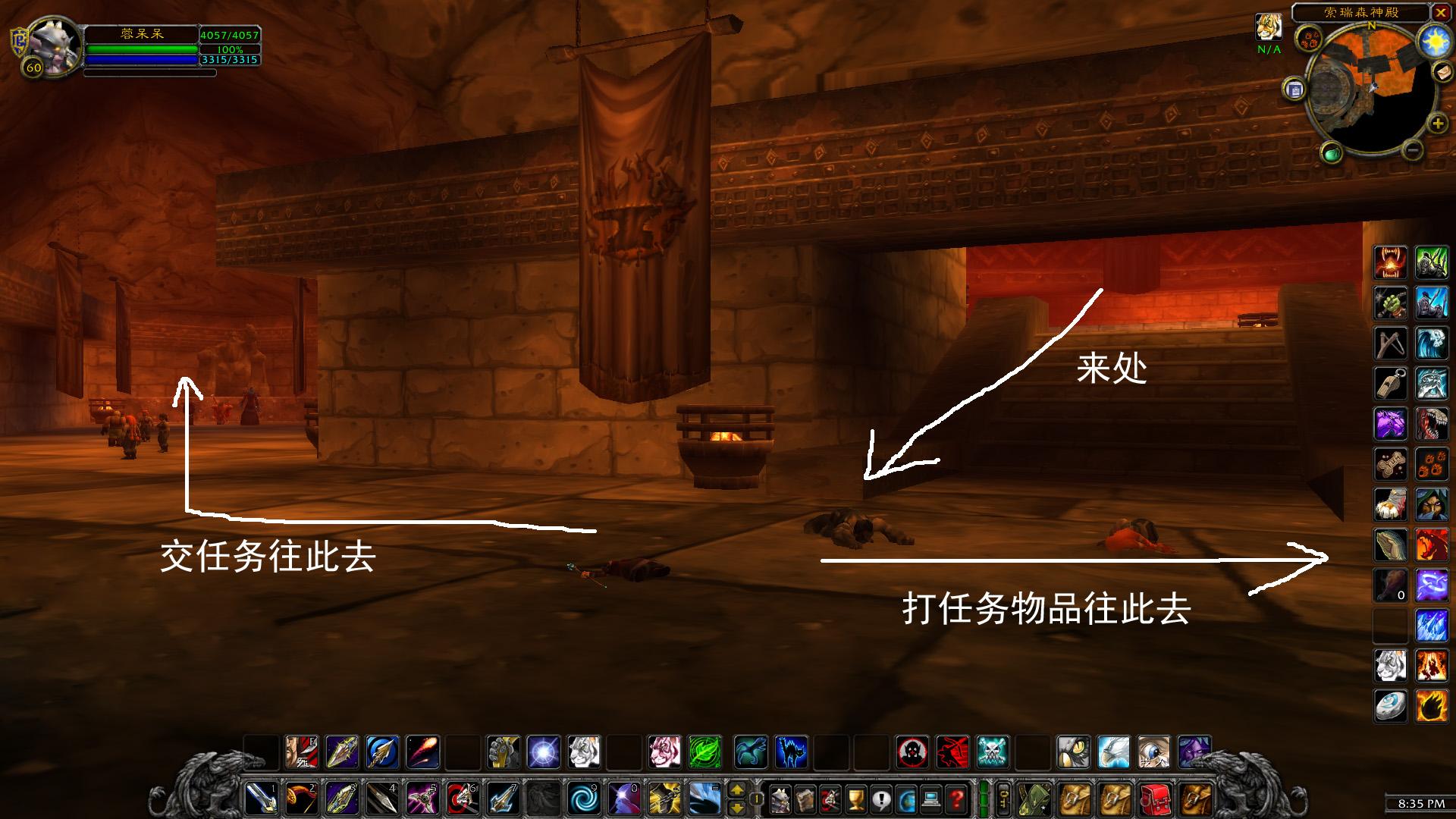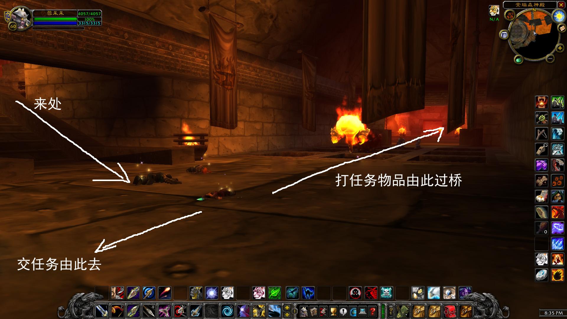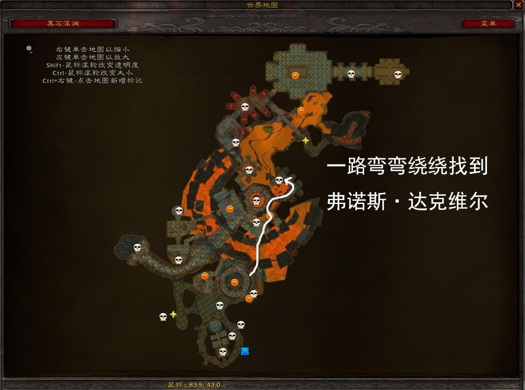 1.暗炉钥匙的起始任务叫做“黑铁的遗产”,必须是灵魂状态下到黑石塔熔岩之池中央,才能与石台上面的弗兰克罗恩·铸铁对话接任务。他是鬼魂状态,平时玩家看不到。