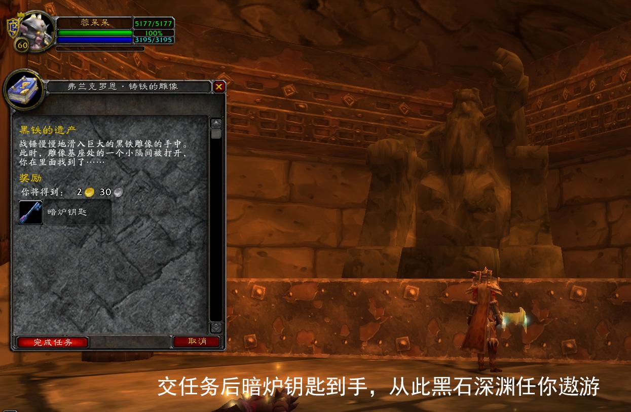 11.放铁胆之锤放上雕像,暗炉钥匙到手,从此黑石深渊任你遨游。