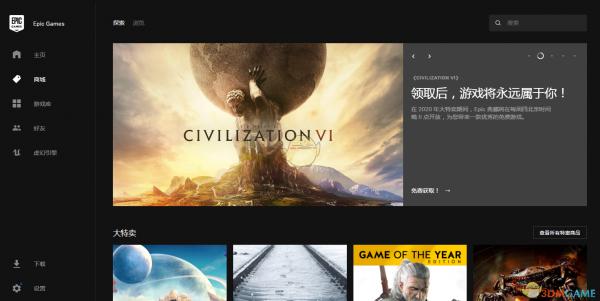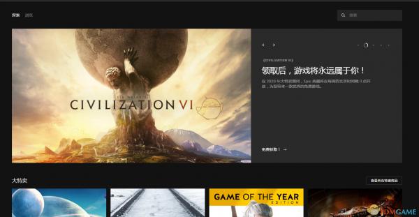 打开EPIC客户端,在首页就可以找到文明6免费领的宣传。
