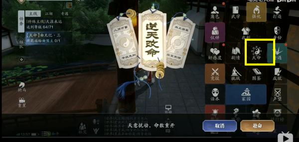 2、进入菜单界面,就可以看见逆天改命的按钮,点击天命即可;