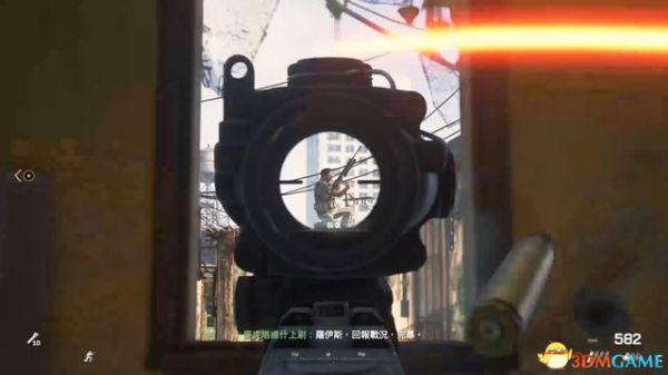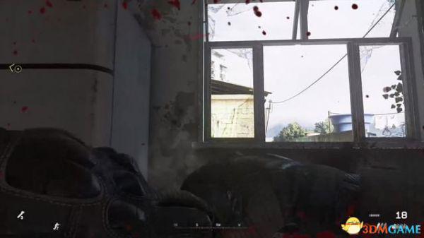 来到开阔地带就发现不对,从右至左扫射楼顶和窗户处出现的敌人。