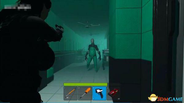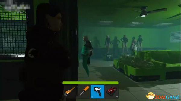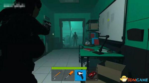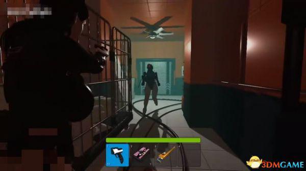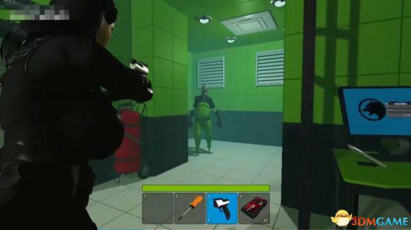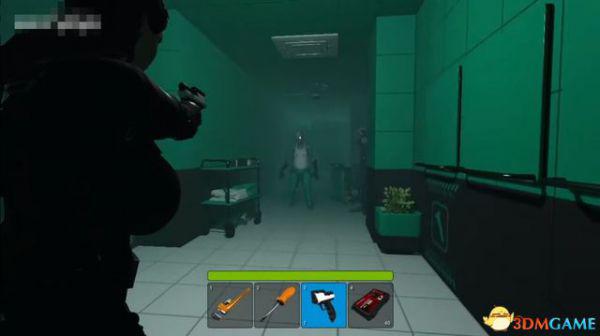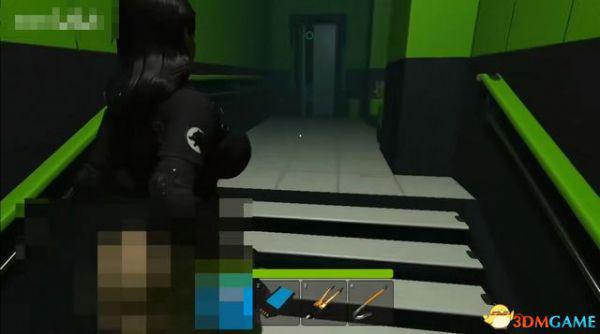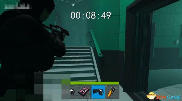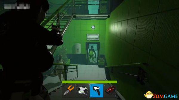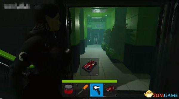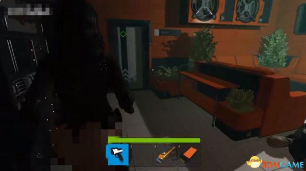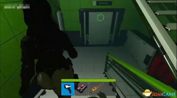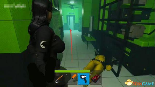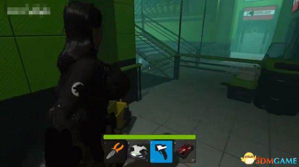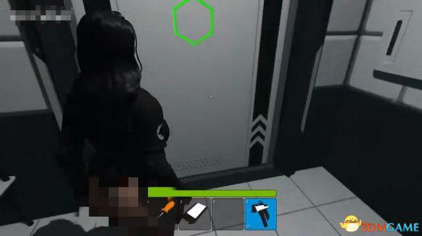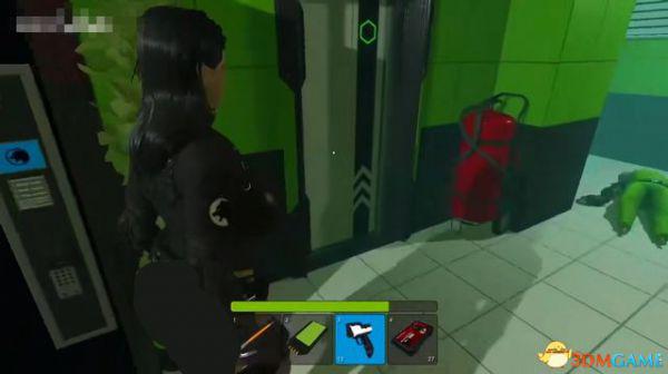出电梯往前走一段,会断电一小会,不用着急,地上拿到喷枪,然后等电力恢复。