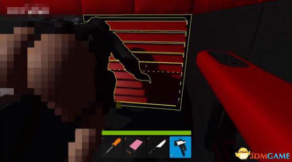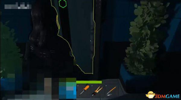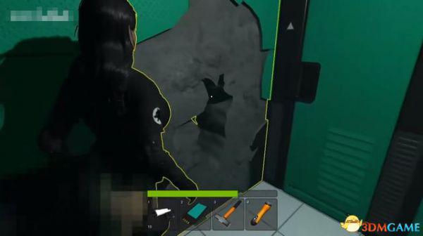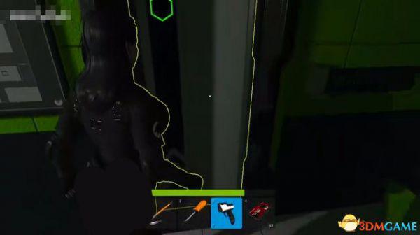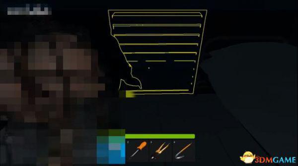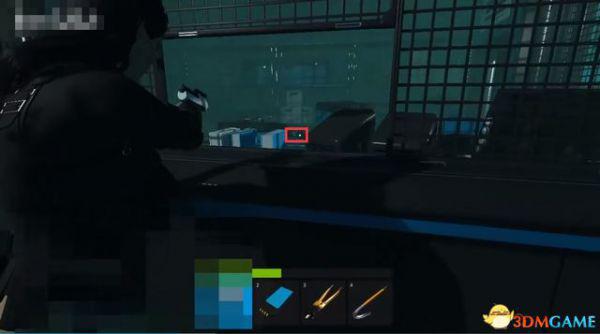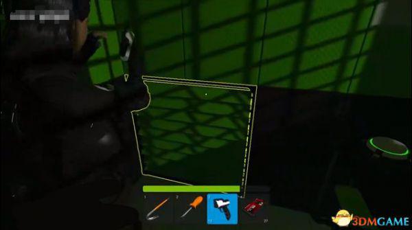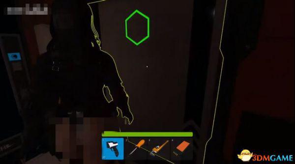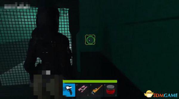 然后到左边来拆地雷,蹲着慢慢靠近,等地雷出现黄色轮廓时,按钳子的快捷键。