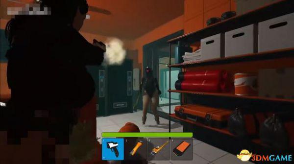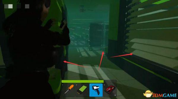 左边的区域会因为触碰红外线而关上,里面有一把散弹枪,后期可以用红外屏蔽仪进去。