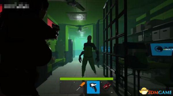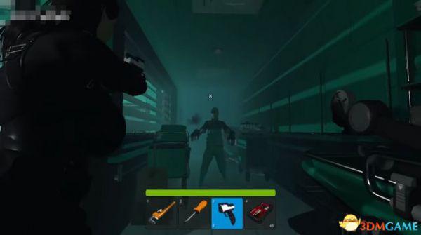 来到一片蓝色区域,桌上拿到冲锋枪和弹药,然后转头就有一只怪物给我们试枪。