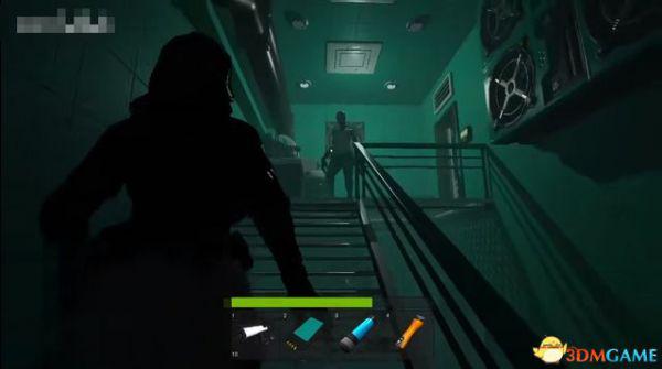 进到一个有楼梯的区域,从左边楼梯下来有一只怪,左边上楼是安全屋,直走是红区。