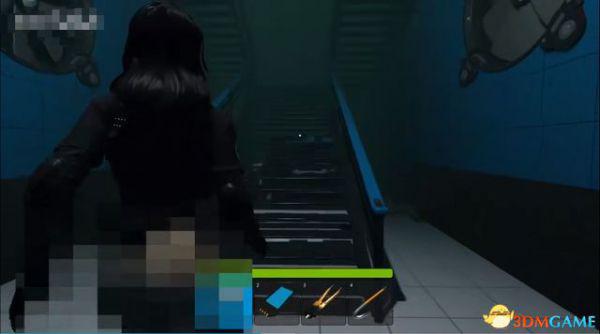 之后再返回大锤砸开的墙壁这边,往右走,上楼进毒气室。
