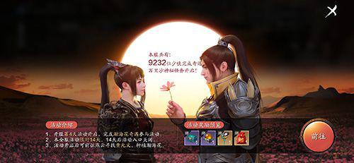 知道大致的情况以后我们自动寻路去月牙泉找黄元文,二人因为国家大事没有成婚,但是二人誓约当沙漠里能有一片花海的时候就结婚,接下来就是我们少侠么们的任务啦,每个少侠都可以接受任务,种下花种,为天下有情人做出一份贡献。