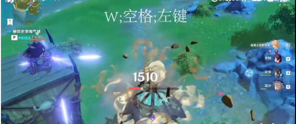 3、跳上去打,位置不太对,重跳几次跳到方便A的地方,掉下来也没关系,追着连击,后面还有石头,打碎了有风场 ;