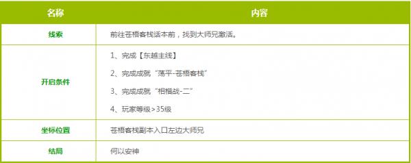 2、然后完成上述的四个开启条件,东越主线和苍梧客栈就随着任务做,相楷战在侠缘眷侣里面,全部达成即可完成何以安神奇遇。
