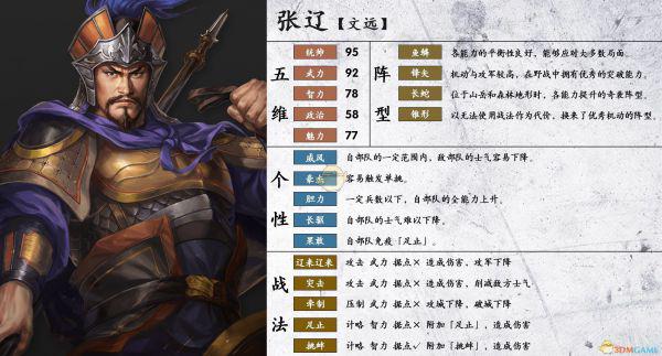 张辽是三国时期魏国的武将,个性五蓝,历史上也是顶尖的武将,在《三国志14》中张辽也是实力很强的人物,下边就给大家带来“kotori”分享的张辽属性个性一览,方便大家查询。