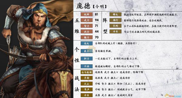 《三国志14》庞德属性个性一览