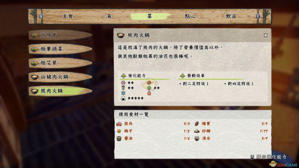 《天穗之咲稻姬》中的山猪肉火锅和熊肉火锅是一样的,可以用来刷力量,但是很多玩家都不太清楚山猪肉火锅的菜谱需要什么食材,今天小编就给大家带来玩家“herrychirs”分享的山猪肉火锅菜谱,一起来看看吧。