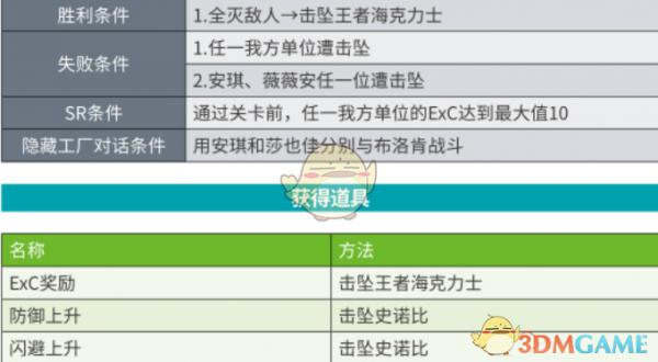 一开始我方只有甲儿等3名队员,SR条件只要让甲儿冲在最前面就行了,杂兵机构不成威胁。很快我方大部队和敌增援赶到,敌方有3架BOSS机,不过没有什么阴招,慢慢围歼就可以了。注意击坠王者海克力士就过关了,所以要将他留到最后。