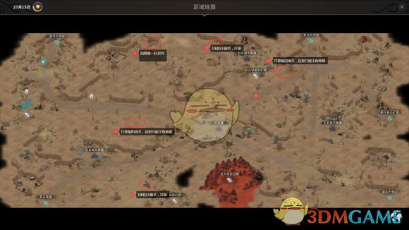 3、②的地方,就是一个小副本,这个时候,你选别打,打路上的强盗来升级,(强盗头上的名字,会变成暗红,这就说明,你打他,99%会赢)然后就这样升级,升到2-3级,就可以去打②的地方。