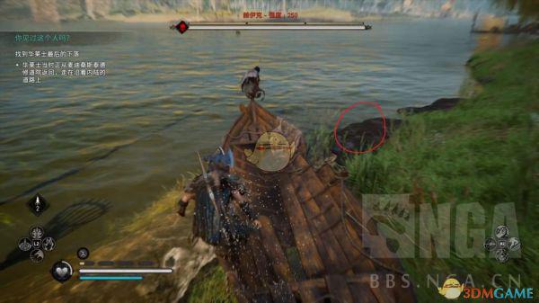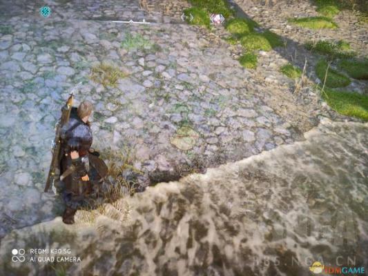 1、将NPC引至突出的岸边,既不能是平缓地面,高度也不能过高,如下图的红圈处是符合条件的:
