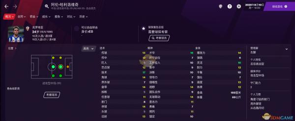 才华16、技术17、灵活16,三项关键属性都非常优秀,唯一的缺点是精神属性较差,镇定和决断只有10.但作为一名免签的自由球员,还是异常不错的,小球队福音。