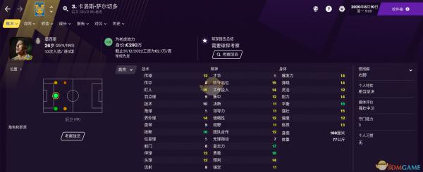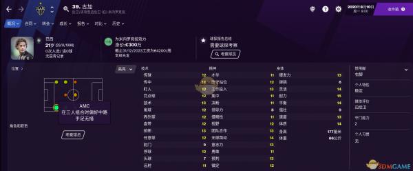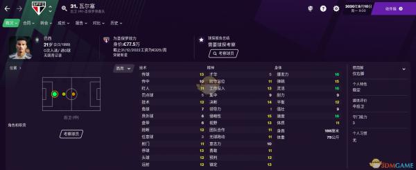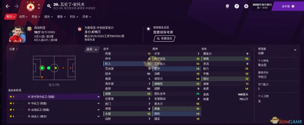 19岁的小将,各项属性都在及格线以上,具有很高的潜力。隐藏不错很容易就能练起来,也可以踢防守型后腰位置。