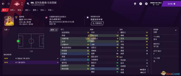 相较于马克西姆来说弱一点,但是工资要求更低,各项属性也比较不错,适合踢防守型门将。