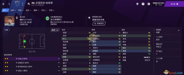 18岁的中后卫,各项属性都非常不错,但身体属性较弱,潜力很高值得培养。