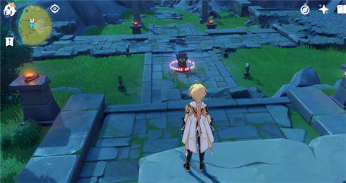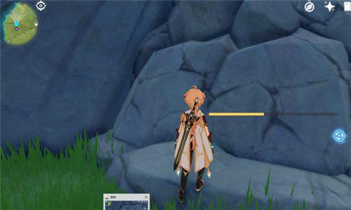 1、首先按住主界面的右下角的元素视野按钮,电脑玩家点击鼠标中键,之后在周围寻找一块石头,石头在一个峭壁下方;