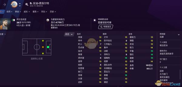 托马斯 西人 2000W左右 武磊的笨逼队友 不过游戏里还可以用 有远射 测试时半程14球12助 屡屡进超级远射